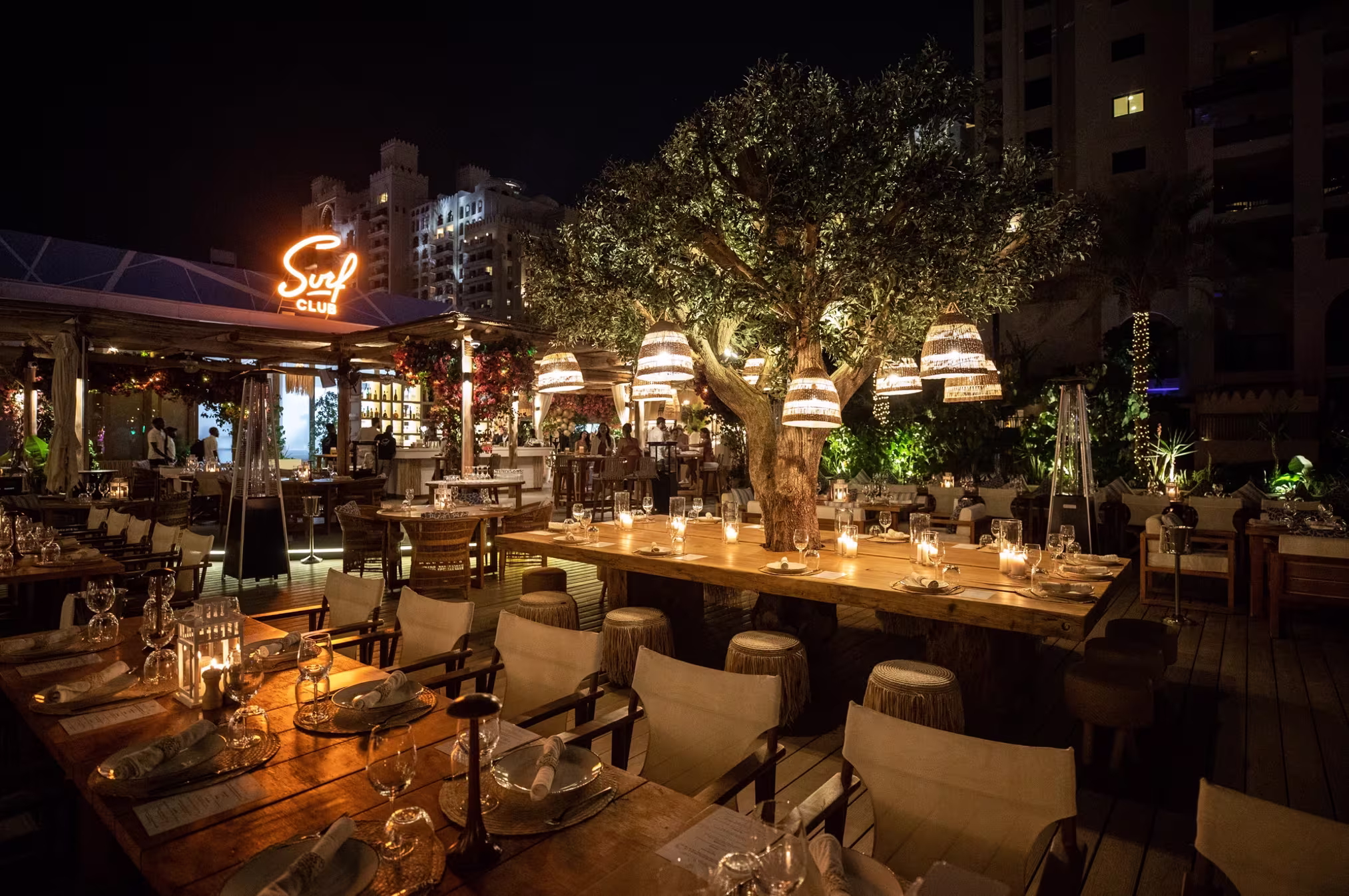 Enjoy dining on the beach and late-night live music at Surf Club. This Dubai hotspot is located at the Jumeirah Beach Hotel, right on the Arabian Gulf.Â
