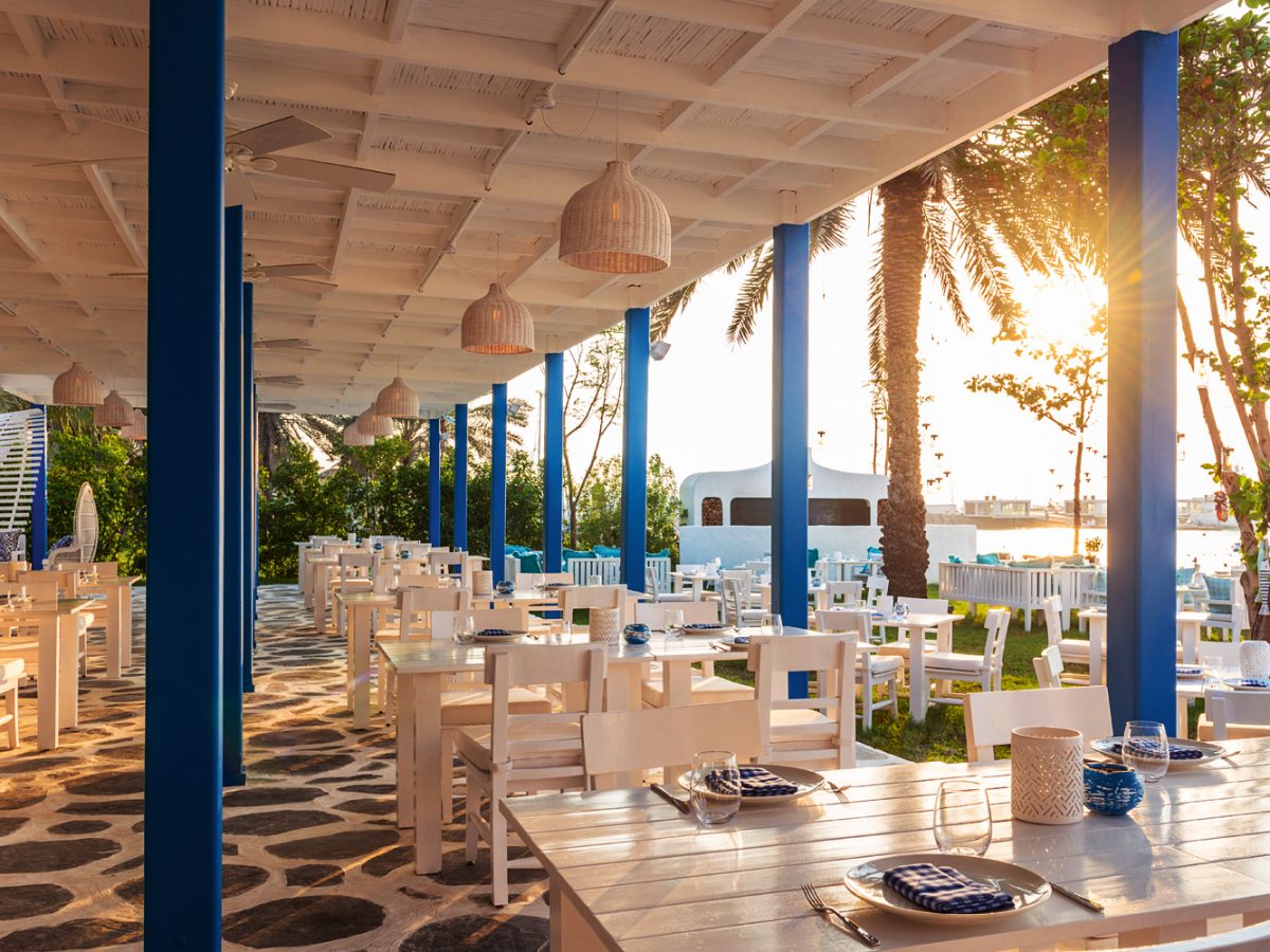 An Aegean menu of Turkish and Greek cuisine awaits set against the stunning backdrop of the Mina Seyahi sunset and under the twinkling Arabian night sky.