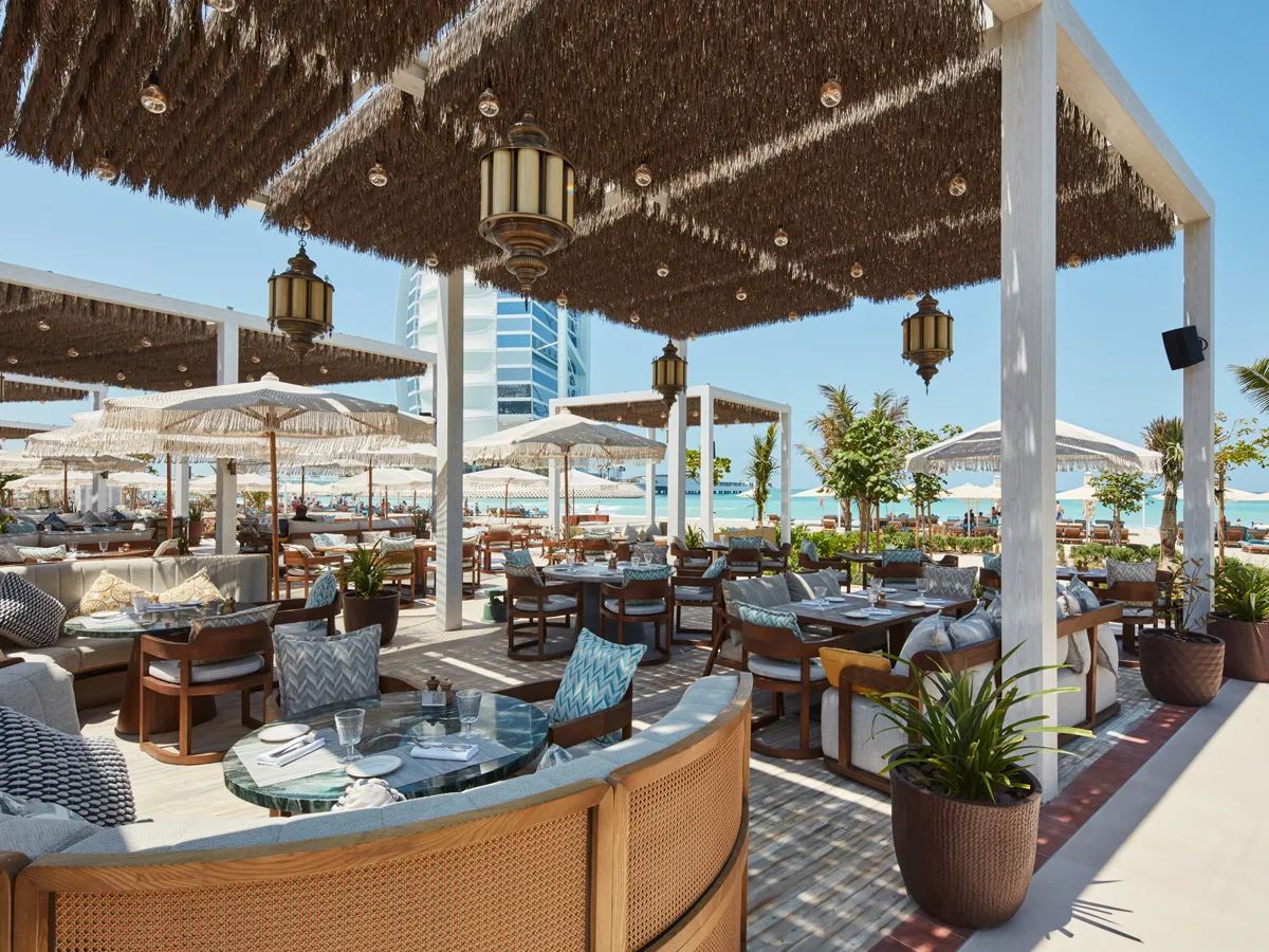 Bold Mediterranean and Levantine flavours are enjoyed on the beachfront with elegant presentation, ocean views, sunlit surroundings, and a relaxed atmosphere, making each meal a special occasion.