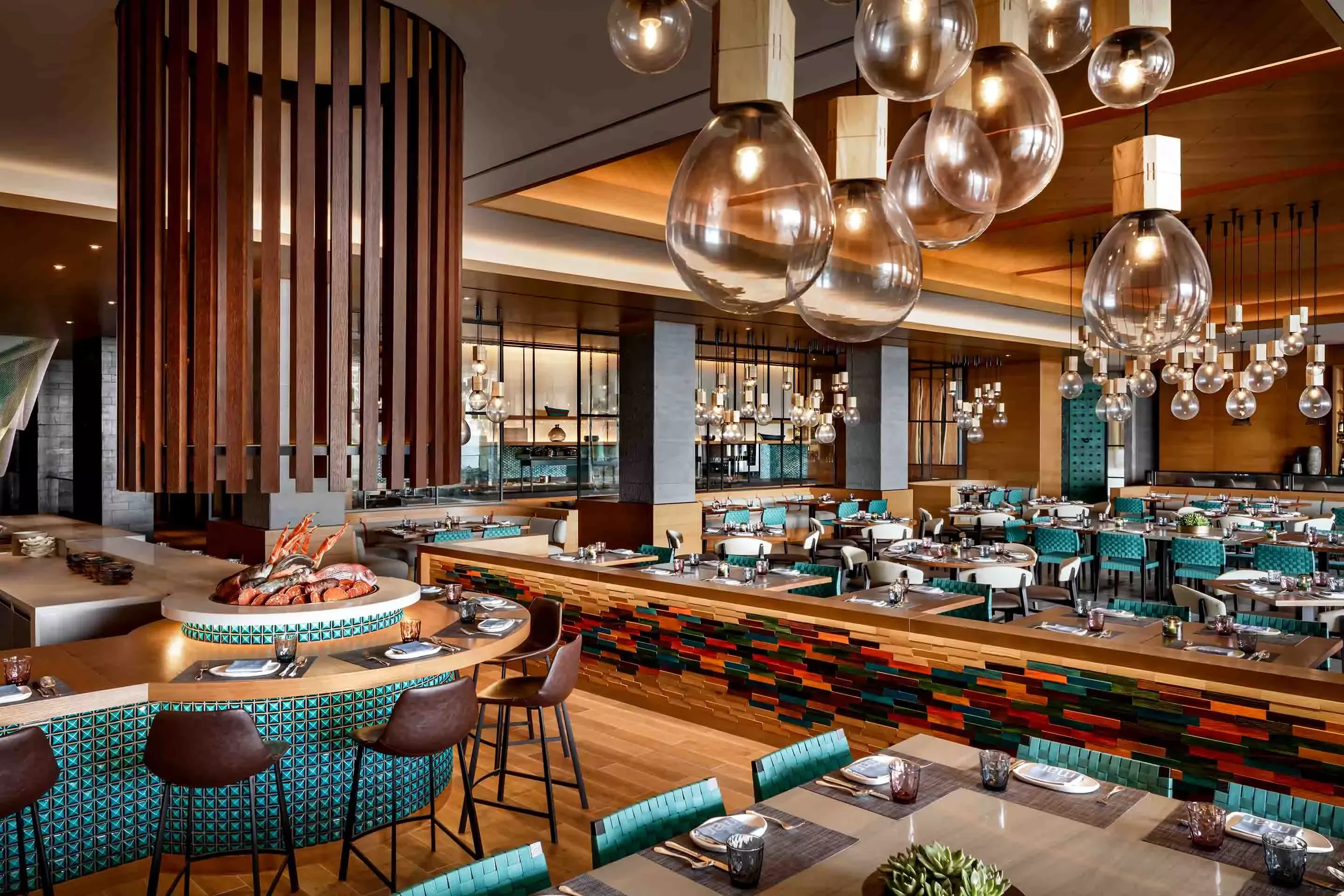 Sucre Fire Dining is located along the scenic waterfront of Zabeel, offering a unique Mediterranean dining experience with a fire-inspired menu. The beachfront setting provides stunning views of the water, creating a perfect backdrop for a relaxed meal.